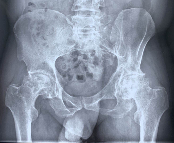 近日,我院骨科李寬新主任團(tuán)隊(duì)成功應(yīng)用微創(chuàng)OCM入路聯(lián)合Harris窩技術(shù)實(shí)現(xiàn)雙側(cè)股骨頭壞死精準(zhǔn)全髖關(guān)節(jié)置換。骨科關(guān)節(jié)外科二病區(qū)患者周先生,44歲,本應(yīng)是年富力強(qiáng)的家庭支柱,卻因雙側(cè)股骨頭壞死,失去勞動(dòng)能力,成為低保戶(hù)。周先生嗜酒習(xí)慣,自18歲始每天飲酒超過(guò)500g。3年前出現(xiàn)雙髖部劇烈疼痛、活動(dòng)受限,需扶雙拐勉強(qiáng)行走,遂至當(dāng)?shù)乜h醫(yī)院治療,考慮股骨頭壞死,治療效果不佳,后輾轉(zhuǎn)至上海、北京多家醫(yī)院治療,采用多種保守治療方案均未達(dá)到滿(mǎn)意療效,巨額的花費(fèi)使得本已清貧的家庭雪上加霜!通過(guò)病友介紹,周先生抱著最后的希望前來(lái)我院骨科就診。