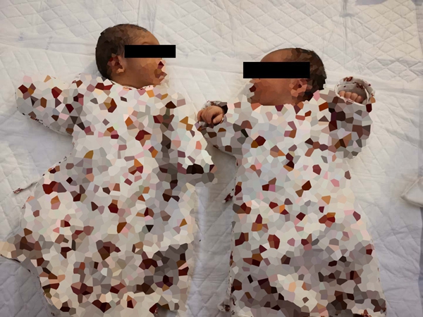 這對寶寶父母婚后3年未孕,2019年上半年來我院生殖醫(yī)學(xué)中心就診,臨床診斷女方為繼發(fā)性不孕,男方因素,于我中心行人工授精助孕3個周期,未孕。經(jīng)我院生殖醫(yī)學(xué)中心團隊科學(xué)評估后進行體外受精-胚胎移植(第一代試管嬰兒技術(shù))助孕治療,并制定了合理、個性化的促排、取卵、移植方案。移植后30天來院檢查可見心管搏動,提示雙胎妊娠。后于我院定期產(chǎn)檢、隨訪,于2020年9月初在我院剖宮產(chǎn)分娩兩活嬰,母嬰平安。