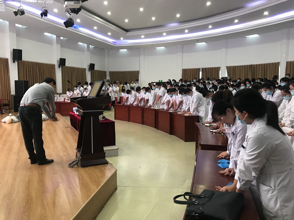 此次崗前培訓(xùn)包括理論專題講座、臨床實(shí)踐能力培訓(xùn)兩部分內(nèi)容。專題講座內(nèi)容包括新冠肺炎院感防控、醫(yī)德醫(yī)風(fēng)、醫(yī)患溝通、住培政策、臨床路徑、院內(nèi)感染、醫(yī)療法律法規(guī)、臨床教學(xué)、醫(yī)療文書書寫、處方書寫、科研方法、循證醫(yī)學(xué)、預(yù)防醫(yī)學(xué)、圖書館使用、學(xué)員安全管理、臨床通科的介紹和科室注意事項、壓力與情緒管理等;臨床實(shí)踐能力培訓(xùn)包含了內(nèi)科、外科、婦產(chǎn)科、兒科、急診等基本臨床技能。