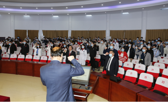 王洪巨院長(zhǎng)為新職工做了《從醫(yī)從教30年感悟--與新入職同志共勉》的專題講座,王院長(zhǎng)以鮮活的個(gè)人成長(zhǎng)經(jīng)歷結(jié)合從醫(yī)從教30年的感悟,諄諄教導(dǎo)、殷殷期望新職工們能夠講法律、講政治、講大局、講原則、講風(fēng)格,愛(ài)崗敬業(yè)、奮發(fā)拼搏,為新員工明確了職業(yè)生涯應(yīng)守護(hù)的底線,樹(shù)立了正確的世界觀和價(jià)值觀。
