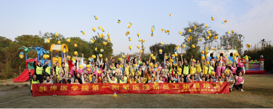 10月24日,組織新進(jìn)職工在禾泉農(nóng)莊進(jìn)行戶外拓展培訓(xùn)。本次拓展訓(xùn)練在教練的指導(dǎo)下分組,每組以自己獨(dú)特方式呈現(xiàn)隊(duì)形,吶喊奮斗的誓言。在團(tuán)隊(duì)破冰中,來(lái)自不同地域的青年們打破彼此的隔閡,成為陌生的熟悉人,在如水、極速60秒、移動(dòng)塔羅牌等游戲中,深刻領(lǐng)會(huì)團(tuán)隊(duì)協(xié)作的重要性,培養(yǎng)了他們團(tuán)隊(duì)協(xié)作能力、凝聚力,在動(dòng)感繩圈游戲中感受了集體的強(qiáng)大力量。最后在彼此的握手擁抱中,使他們真正意識(shí)到從此他們都是蚌醫(yī)一附院一家人。