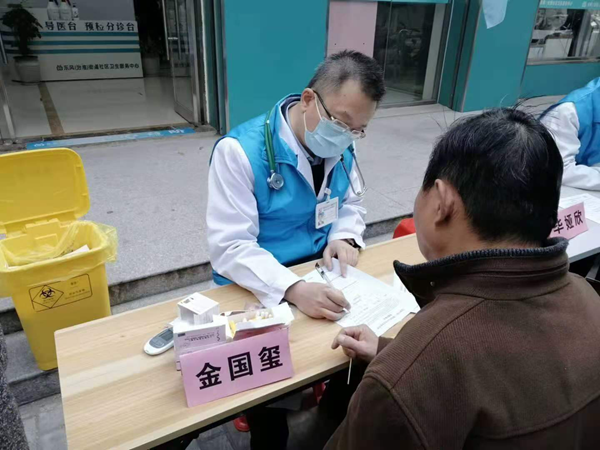 內(nèi)分泌科專家金國璽、畢婭欣、胡小磊等人耐心地為前來就診的糖尿病患者們答疑解惑,根據(jù)患者們自身病情以及剛監(jiān)測的糖化血紅蛋白、血糖結(jié)果給出相應(yīng)的治療建議,為每位就診結(jié)束的患者發(fā)放糖尿病患教材料,傳遞糖尿病科普知識。