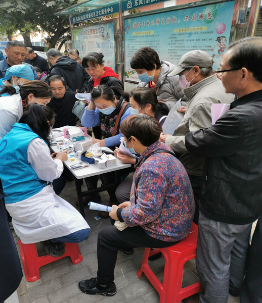 為積極響應(yīng)聯(lián)合國糖尿病日“藍光行動”,倡導(dǎo)健康生活方式,宣傳普及糖尿病相關(guān)防治知識,11月8日上午,在第14個“世界糖尿病日”即將到來之際,我院內(nèi)分泌科在東風(治淮)街道社區(qū)衛(wèi)生服務(wù)中心開展了以“護士與糖尿病”為主題的大型糖尿病篩查義診活動。