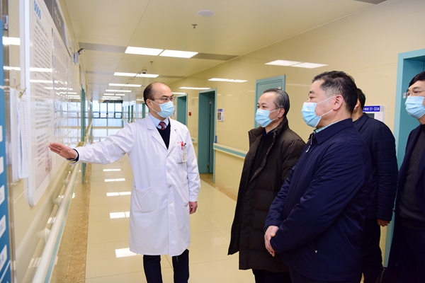 翁建平校長首先來到發(fā)熱門診,詳細了解發(fā)熱患者接診流程和各項疫情防控制度及落實情況;在醫(yī)院門急診部查看患者就診環(huán)境和就診流程;深入9號樓腫瘤放療科和ICU病區(qū),了解患者住院管理和病區(qū)運行情況。