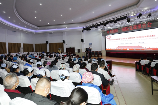 12月23日下午,我院在南院學(xué)術(shù)報告廳召開基層黨組織書記暨中層干部黨課報告會,參加會議的有院黨政領(lǐng)導(dǎo)班子成員,各黨總支、直屬黨支部、黨支部書記,科級以上干部,科主任、護士長、教研室主任。黨委書記金世洋主持會議。