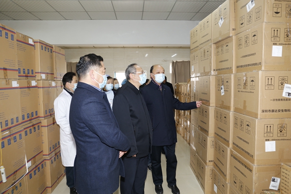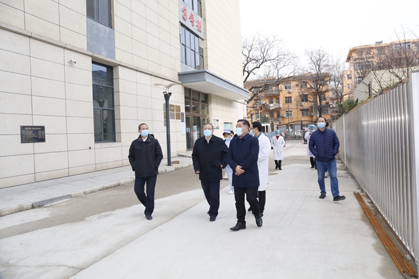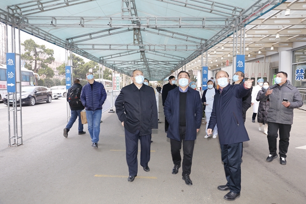 為切實(shí)做好春節(jié)期間疫情防控和安全生產(chǎn)工作,1月28日,學(xué)校黨委書記高懷荃帶領(lǐng)校黨辦主任高恒深入我院,就醫(yī)院疫情防控和安全生產(chǎn)工作進(jìn)行現(xiàn)場檢查。醫(yī)院黨委書記金世洋,副院長高涌、李光早、劉曉林及相關(guān)職能部門負(fù)責(zé)人陪同檢查。