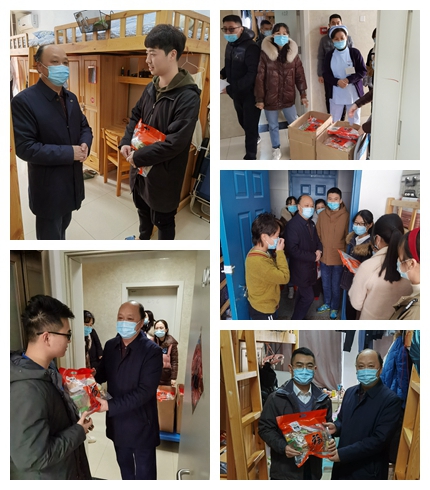 冬已去,春既來(lái),隨著新春佳節(jié)的臨近,為落實(shí)學(xué)校寒假管理和疫情防控工作中“非必要不外出,就地過(guò)年”的倡議,確保留院的所有學(xué)生度過(guò)一個(gè)溫馨祥和的春節(jié)。我院本科生和研究生、住院醫(yī)師規(guī)范化培訓(xùn)學(xué)員共計(jì)1700余人,克服自身困難,選擇“就地過(guò)年”。2月10日上午,臨床醫(yī)學(xué)院院長(zhǎng)、我院副院長(zhǎng)高涌帶領(lǐng)教育處、護(hù)理部、科研處一行走訪慰問(wèn)學(xué)生。