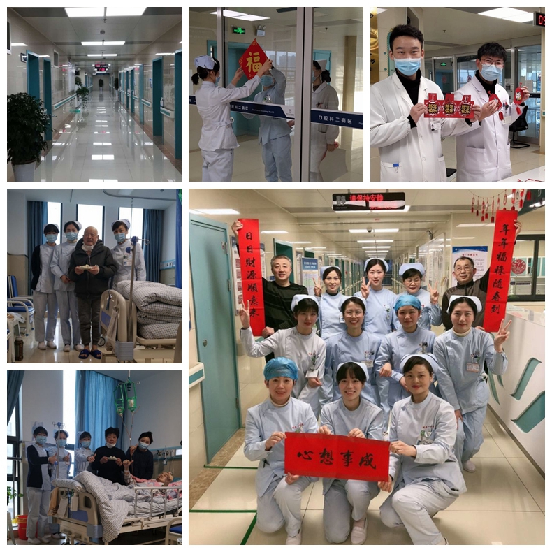 在口腔科的病房里,醫(yī)護(hù)人員在做好疫情防控工作的基礎(chǔ)上,積極籌備新春慰問(wèn)活動(dòng),對(duì)病房各處進(jìn)行了徹底全面的清掃,除舊布新,創(chuàng)造了干凈、整潔的環(huán)境,讓患者感受到過(guò)年的喜慶氛圍。同時(shí),醫(yī)護(hù)人員還精心為患者送上手工制作的水餃,讓患者感受科室醫(yī)護(hù)人員家人般的溫暖。