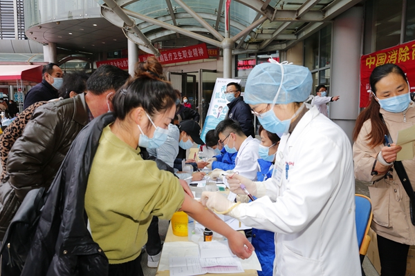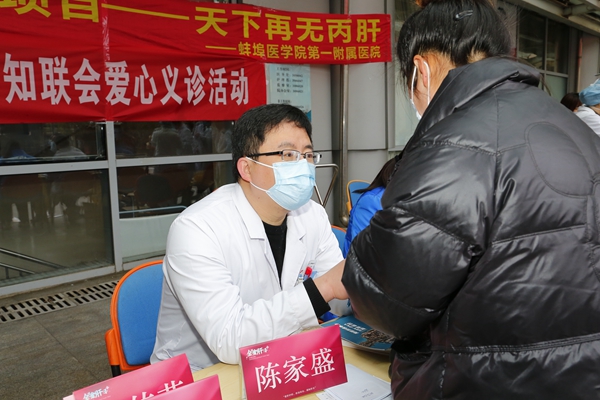 2021年3月18日,是第21個(gè)“全國(guó)愛(ài)肝日”。今年的主題是:“愛(ài)肝護(hù)肝、防治結(jié)合、遏制肝炎”。當(dāng)天上午,蚌醫(yī)一附院感染性疾病科在醫(yī)院門(mén)診外舉辦口號(hào)為“天下再無(wú)丙肝”的全國(guó)愛(ài)肝日大型義診活動(dòng),共發(fā)放了200份丙肝抗體和20份乙肝病毒核酸的免費(fèi)檢測(cè),受到老百姓的一致好評(píng)。