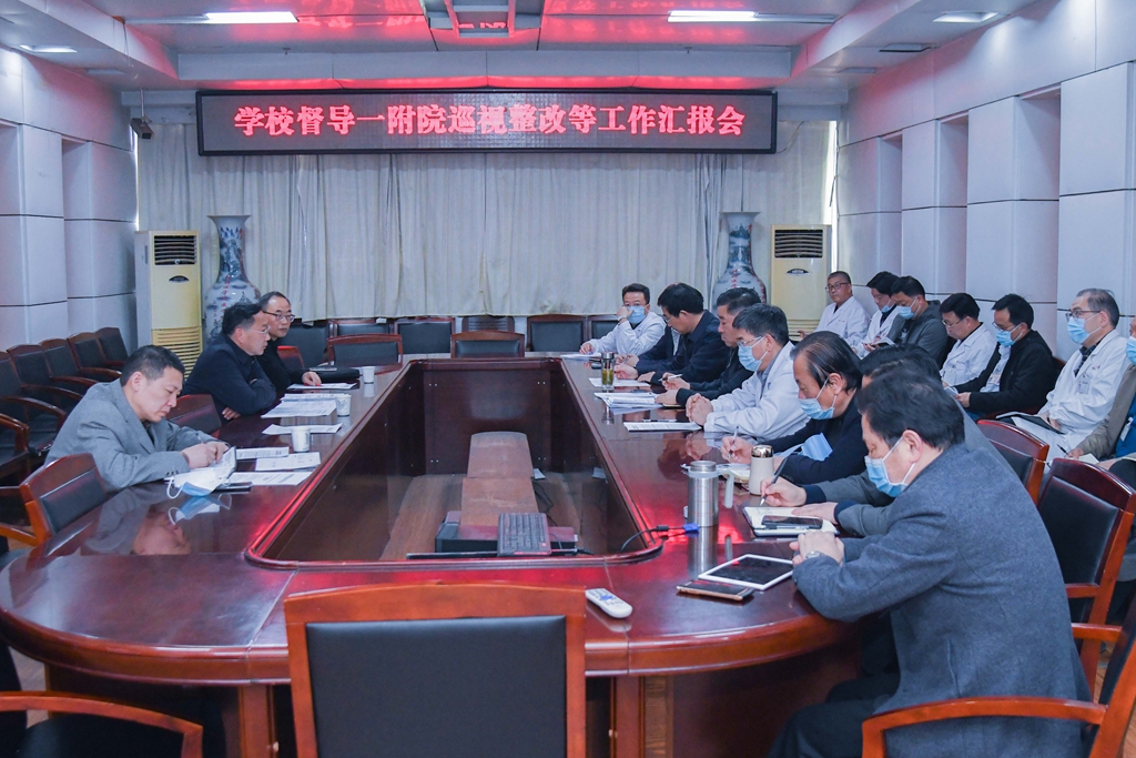 4月12日下午,校紀(jì)委書記馬哲銳一行來院就十屆省委巡視反饋整改、新一輪深化“三個以案”警示教育、黨史學(xué)習(xí)教育開展情況和常態(tài)化疫情防控等近期重點工作進行督察指導(dǎo)。醫(yī)院黨政領(lǐng)導(dǎo)、臨床醫(yī)學(xué)院領(lǐng)導(dǎo)及相關(guān)部門負(fù)責(zé)人參加匯報會。