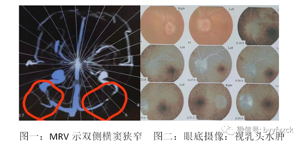 醫(yī)院神經(jīng)內(nèi)科接診后,經(jīng)過(guò)頭顱磁共振靜脈圖(MRV)檢查,提示雙側(cè)橫竇重度狹窄。同時(shí),該患者腦壓400mmH2O,是正常人數(shù)值的2倍多,眼底攝像提示視乳頭嚴(yán)重水腫。