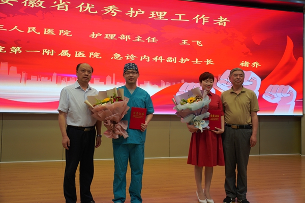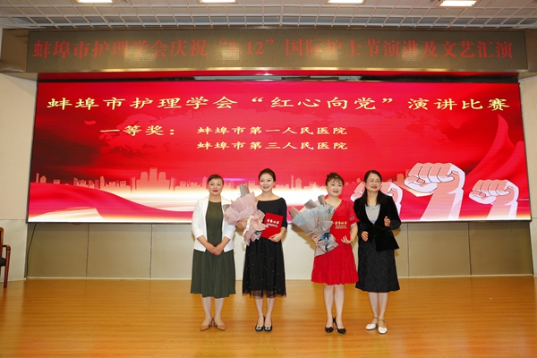 隨后,市護(hù)理學(xué)會(huì)各位領(lǐng)導(dǎo)為安徽省優(yōu)秀護(hù)理工作者和蚌埠市優(yōu)秀護(hù)理工作者、“紅心向黨”演講比賽的獲獎(jiǎng)人員頒發(fā)了榮譽(yù)證書(shū),獻(xiàn)上節(jié)日的鮮花和美好的祝福。