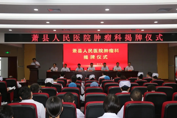 2021年6月8日,蚌埠醫(yī)學院第一附屬醫(yī)院蕭縣醫(yī)院腫瘤科揭牌儀式舉行。蚌醫(yī)一附院院長王洪巨,縣委常委、副縣長孫宏雁,安徽省抗癌協(xié)會理事長陳振東,縣衛(wèi)健委黨組書記、主任吳征崗及醫(yī)院領(lǐng)導班子成員出席活動。蚌醫(yī)一附院相關(guān)部門負責同志、選派專家,縣中醫(yī)院負責人等參加活動?;顒佑砂霾横t(yī)學院第一附屬醫(yī)院蕭縣醫(yī)院院長何祖龍主持,縣委常委、副縣長孫宏雁和蚌醫(yī)一附院院長王洪巨共同為新成立的腫瘤科揭牌。