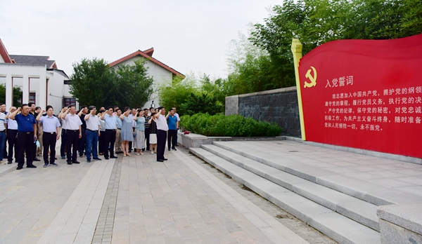 在“沈浩同志先進(jìn)事跡陳列館”,大家認(rèn)真聽取了館內(nèi)工作人員對沈浩同志事跡的介紹,了解到沈浩同志2004年2月告別家人,只身一人,來到小崗村,一干就是6年,他以實(shí)際行動(dòng)履行共產(chǎn)黨員的神圣職責(zé),值得我們每一名黨員學(xué)習(xí),他敢想敢干、全心全意為民謀發(fā)展的奉獻(xiàn)精神讓所有人肅然起敬。隨后,在醫(yī)院黨委書記金世洋帶領(lǐng)下,全體黨員面對鮮紅的黨旗,莊嚴(yán)地舉起右手,重溫入黨誓詞,將黨員的榮耀、責(zé)任和使命牢牢銘記在心。