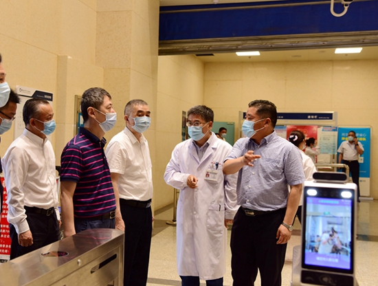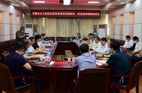 7月2日上午,省衛(wèi)生健康委黨組書記劉同柱一行在蚌埠市副市長張曉靜等陪同下對一附院黨建、公立醫(yī)院高質(zhì)量發(fā)展、常態(tài)化疫情防控、疫苗接種等工作進(jìn)行調(diào)研指導(dǎo)。學(xué)校黨委書記高懷荃、校長翁建平及一附院黨政領(lǐng)導(dǎo)陪同。