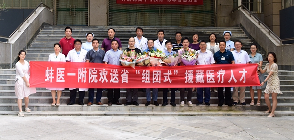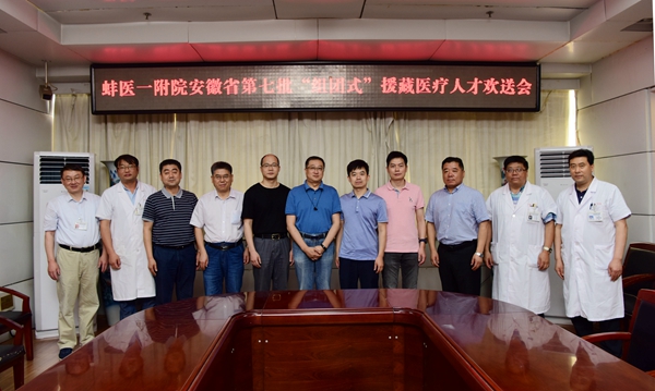 7月20日上午,我院在行政樓十樓會議室召開蚌醫(yī)一附院安徽省第七批“組團(tuán)式”援藏醫(yī)療人才歡送會,醫(yī)院黨政領(lǐng)導(dǎo),援藏隊員所在黨總支書記、所在科室負(fù)責(zé)人,醫(yī)務(wù)處、人事處等相關(guān)職能部門負(fù)責(zé)人,援藏隊員張陽、李大鵬、徐德才、周蘭柱參加會議,黨委書記金世洋主持歡送會。