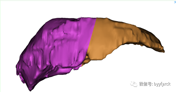仔細研習術前影像學檢查,發(fā)現(xiàn)病灶主要位于右肝管,累計肝門部膽管,膽管腫瘤不能排除。左肝明顯增生肥大,考慮患者病程時間長,良性疾病可能。通過三維重建軟件計算左外葉體積約為734cm3,標準肝體積約為1330cm3(圖1)?;颊呱眢w狀況好,肝功能及腫瘤指標正常,無肝炎及肝硬化病史,預計可以耐受手術,有剖腹探查指征。