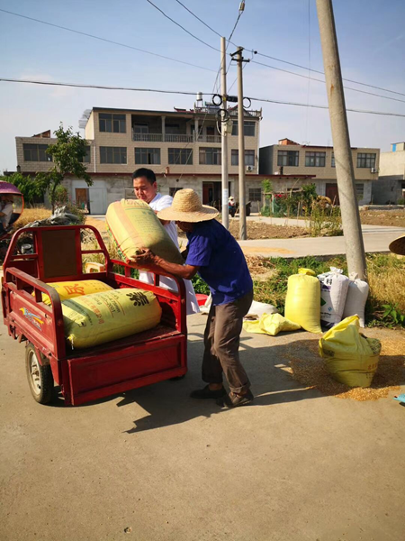劉桂春老兩口70多歲了,育有兩兒一女,子女常年出外打工,農(nóng)忙麥收時也沒時間回來,家里只留下了兩位老人家。5月28日下午,正在村衛(wèi)生室忙碌的薛永舉看見門前麥田里的兩位老人在收麥,他們因年事已高,行動稍顯吃力,薛永舉二話沒說,忙完手頭的工作,就幫助他們一塊干起了活兒,撐開袋口,將收割機里的糧食裝進袋子里,再一袋袋抬到三輪車上。到底是年輕有力氣,經(jīng)過近1小時的辛勤勞動,20多袋2000多斤小麥全部裝袋完成,搬上三輪車。老兩口客氣地邀請薛永舉到家里吃飯, 被他謝絕了。