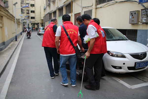 9月3日下午6:00,后勤黨支部黨員深入勤儉里社區(qū),拿起掃帚、夾子,清理社區(qū)內(nèi)垃圾、煙頭。針對社區(qū)內(nèi)電動車亂停放問題,黨員們把所有亂停亂放車輛搬至停車線內(nèi)。