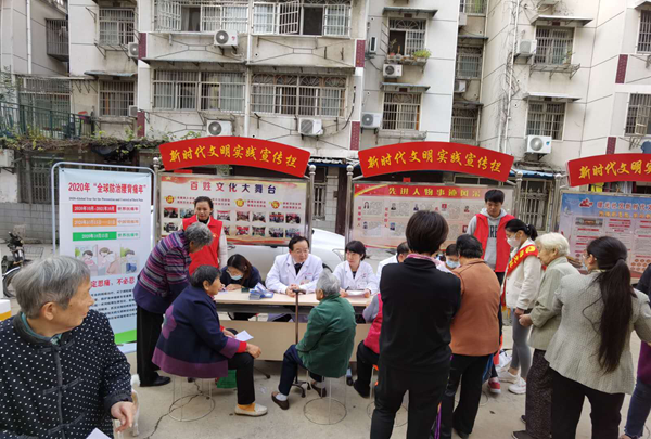 活動現(xiàn)場,支部打起在職黨員進(jìn)社區(qū)“亮身份 做承諾 爭當(dāng)社區(qū)先鋒”的橫幅,在廣場建成在職黨員進(jìn)社區(qū)臨時服務(wù)站,為社區(qū)群眾免費體檢。