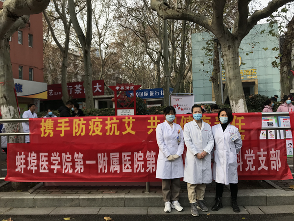 12月1日,在第33個(gè)世界艾滋病日來臨之際,蚌埠醫(yī)學(xué)院第一附屬醫(yī)院第三黨總支感染科支部聯(lián)合防??茀⑴c市疾控中心組織的主題為“攜手防疫抗艾,共擔(dān)健康責(zé)任”的艾滋病宣傳、義診活動(dòng),活動(dòng)針對蚌埠市市民開展艾滋病知識宣傳工作,提供艾滋病患者義診和市民群眾健康體檢,旨在引導(dǎo)群眾正視艾滋、關(guān)注艾滋、預(yù)防艾滋。
