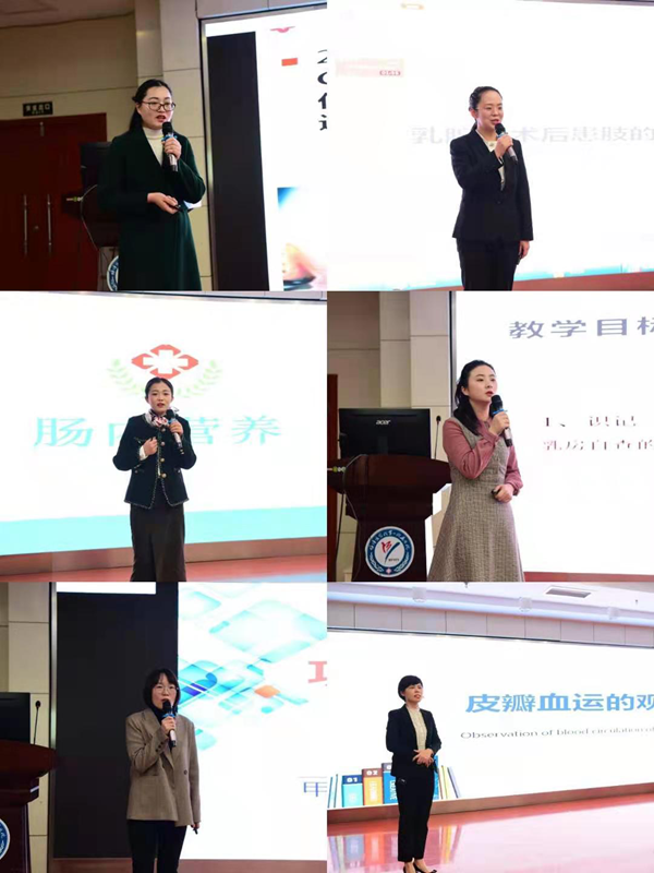 本次競(jìng)賽共收集到外科片臨床科室?guī)Ы汤蠋?/span>“微課”52份,最終遴選出13名選手進(jìn)入決賽?,F(xiàn)場(chǎng)決賽環(huán)節(jié),選手們精心準(zhǔn)備、巧妙設(shè)計(jì),在短短的10分鐘內(nèi),采用案例導(dǎo)入、現(xiàn)場(chǎng)演示、視頻和互動(dòng)等多種教學(xué)手段,充分展現(xiàn)了外科片護(hù)理帶教老師良好的教學(xué)風(fēng)范。