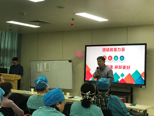 王洪巨院長(zhǎng)首先肯定了麻醉科在2020年取得的成績(jī),隨后從多學(xué)科協(xié)同促進(jìn)科室快速發(fā)展,進(jìn)一步加強(qiáng)科研能力建設(shè),深度學(xué)習(xí)貫徹國(guó)家醫(yī)保政策以及作為附屬醫(yī)院在做好臨床工作的同時(shí)一定兼顧教學(xué)工作等方面對(duì)麻醉科全體醫(yī)護(hù)員工提出要求,要求大家堅(jiān)定正確的理想信念、使命與擔(dān)當(dāng),強(qiáng)化醫(yī)務(wù)人員的宗旨意識(shí),為醫(yī)院發(fā)展與建設(shè)添磚加瓦,貢獻(xiàn)力量。