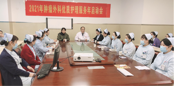 為了積極地響應(yīng)護(hù)理部2021年優(yōu)質(zhì)護(hù)理服務(wù)年活動(dòng),推進(jìn)以病人為中心、強(qiáng)化基礎(chǔ)護(hù)理、深化護(hù)理內(nèi)涵,2月8日下午,腫瘤外科護(hù)理部在19樓會(huì)議室舉行2021年優(yōu)質(zhì)護(hù)理服務(wù)年”啟動(dòng)儀式。腫瘤外科錢(qián)軍主任、護(hù)理部陳永俠副主任、科護(hù)士長(zhǎng)葉楓林出席會(huì)議并講話,腫瘤外科各病區(qū)護(hù)士長(zhǎng)、護(hù)理骨干參加了啟動(dòng)儀式。儀式由孫彩霞護(hù)士長(zhǎng)主持。