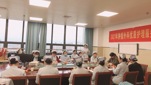 6個(gè)病區(qū)的護(hù)士長(zhǎng)和護(hù)理骨干,就如何開(kāi)展“2021年優(yōu)質(zhì)護(hù)理服務(wù)年”進(jìn)行了匯報(bào),并就如何把基礎(chǔ)護(hù)理工作做細(xì)、做扎實(shí),把腫瘤??铺厣ぷ髯龊谩⑸纤竭M(jìn)行了深入探討。