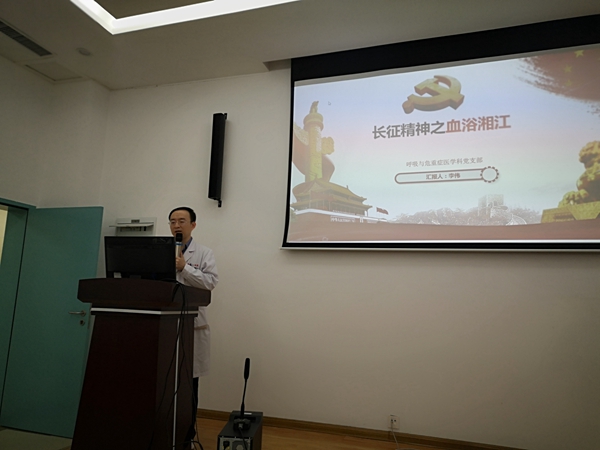 4月20日的黨史學(xué)習(xí),由呼吸與危重癥醫(yī)學(xué)科李偉書記和心血管黨支部的黃宇理書記授課,兩位書記以精彩的幻燈制作、深入淺出的講解,帶領(lǐng)大家學(xué)習(xí)了《長征精神之血浴湘江》和《牢記歷史 勿忘國恥》。