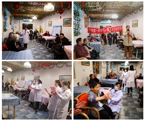 最后,大家陪伴老人們一起“演出”,你笑起來真好看、我的祖國、沒有共產(chǎn)黨就沒有新中國、歌唱祖國等一首首膾炙人口的經(jīng)典旋律飛揚在祥和的庭院中,看著老人們臉上洋溢著幸福的笑容,全體醫(yī)護人員也感到非常自豪和滿足。