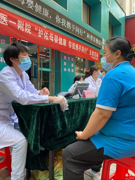 學黨史,辦實事,護佑母嬰健康,你我攜手同行。2021年5月9日,在科主任杜丹麗主任的安排指導下,劉永平及李素霞等主任帶領(lǐng)產(chǎn)科醫(yī)護人員到龍子湖區(qū)東風街道社區(qū)衛(wèi)生服務(wù)中心為廣大群眾開展健康義診活動?;顒邮艿缴鐓^(qū)主任和社區(qū)群眾的普遍歡迎。