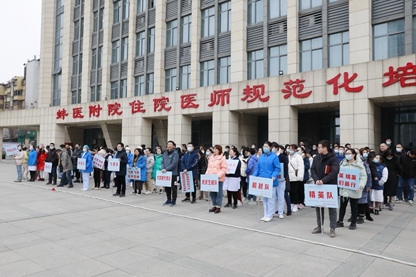 口號聲聲齊震天,蚌醫(yī)齊力勇向前。伴隨著參賽隊(duì)員們雄壯有力的口號,第一黨總支聯(lián)合機(jī)關(guān)工會組織舉辦的“共筑夢想 強(qiáng)院有我”迎新春暨建院70周年華誕拔河比賽隆重拉開帷幕。