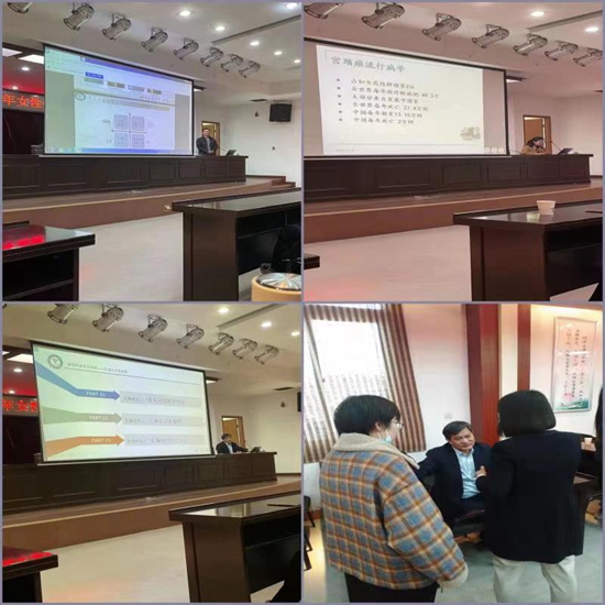 在固鎮(zhèn)農(nóng)商行工作人員積極宣傳協(xié)助下,農(nóng)商行的30余名女職工準(zhǔn)時到達(dá)現(xiàn)場。在講座開始前,體檢中心支部書記李保伍就醫(yī)院基本情況和參與專家等進(jìn)行簡短的介紹。針對農(nóng)商行女職工關(guān)心的健康問題,體檢中心黨支部邀請腫瘤外科博士、副主任醫(yī)師董慧明,體檢中心主治醫(yī)師黃娟,分別就大家關(guān)心的乳腺腫瘤、宮頸癌等方面進(jìn)行健康宣講。
