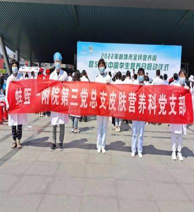 “青春獻(xiàn)禮二十大,強(qiáng)國有我新征程”,為進(jìn)一步普及健康知識(shí),提升青少年健康意識(shí)。5月17日上午,第三黨總支皮膚營養(yǎng)科黨支部組織黨員,前往淮河文化廣場(chǎng),參加“2022年蚌埠市全民營養(yǎng)周暨5.20中國中學(xué)生營養(yǎng)日”啟動(dòng)儀式。