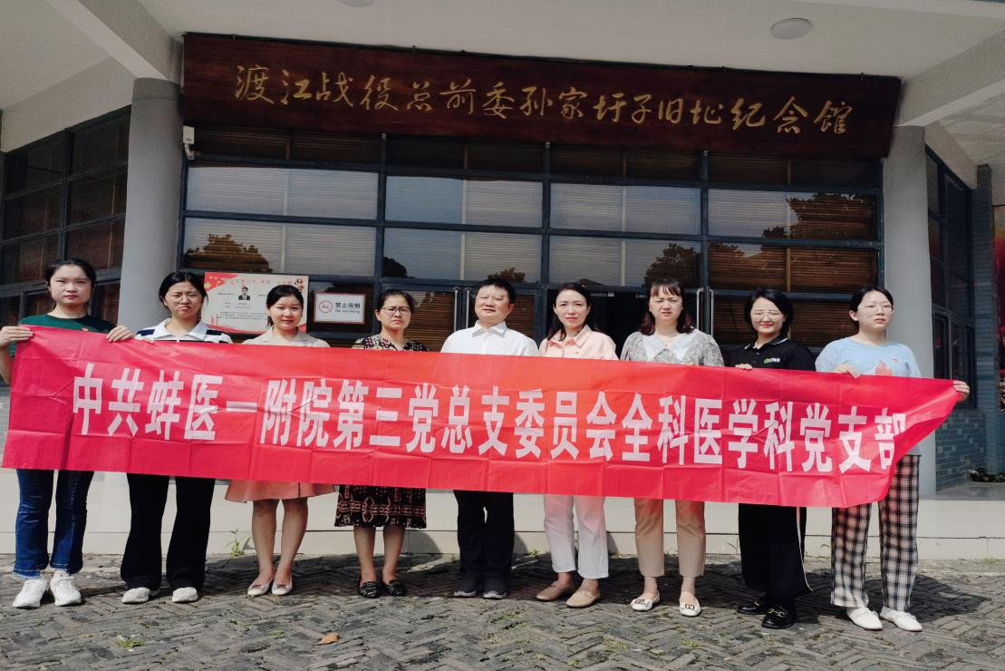 為慶祝中國(guó)共產(chǎn)黨成立101周年,7月1日,第三黨總支全科醫(yī)學(xué)科黨支部部分黨員和入黨積極分子在黨支部梁冰書記帶領(lǐng)下,前往蚌埠市愛國(guó)主義教育基地——蚌埠市孫家圩子紀(jì)念館開展主題活動(dòng),緬懷革命先烈,接受革命傳統(tǒng)教育。