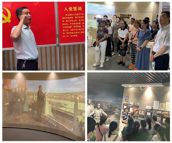 支部書記官建中,帶領(lǐng)全體黨員面對黨旗莊嚴(yán)宣誓,重溫入黨時刻的莊嚴(yán)承諾和堅(jiān)定決心,并深切感受自身擁有的光榮使命、責(zé)任和擔(dān)當(dāng)。百年風(fēng)雨兼程,世紀(jì)滄桑巨變。黨員和入黨積極分子,在講解員的引導(dǎo)下,以黨的百年大事記為時光軸,重新學(xué)習(xí)了中國共產(chǎn)黨的百年光輝歷程。一張張歷史的畫卷,一個個紅色的故事,講述著共產(chǎn)黨人的崢嶸歲月。