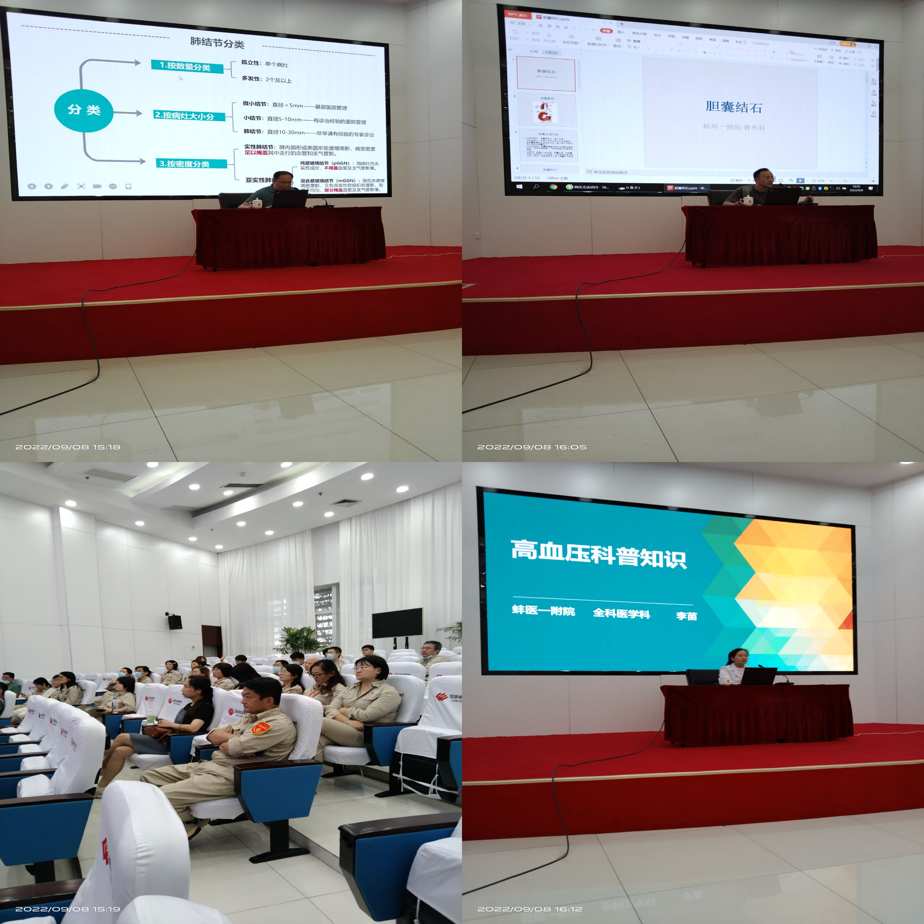 在國能蚌埠發(fā)電有限公司組織人事部工作人員積極宣傳協(xié)助下,30余名職工準(zhǔn)時到達(dá)現(xiàn)場。在講座開始前,體檢中心支部書記李保伍就醫(yī)院基本情況向參與專家等進(jìn)行簡短的介紹。針對對方單位職工關(guān)心的健康問題,體檢中心黨支部邀請普外四科周凱、胸外科王安生、全科醫(yī)學(xué)科李苗、體檢中心黃娟等專家,分別就職工關(guān)心的膽囊結(jié)石、肺結(jié)節(jié)、高血壓管理、宮頸癌、乳腺腫瘤等方面進(jìn)行健康宣講。