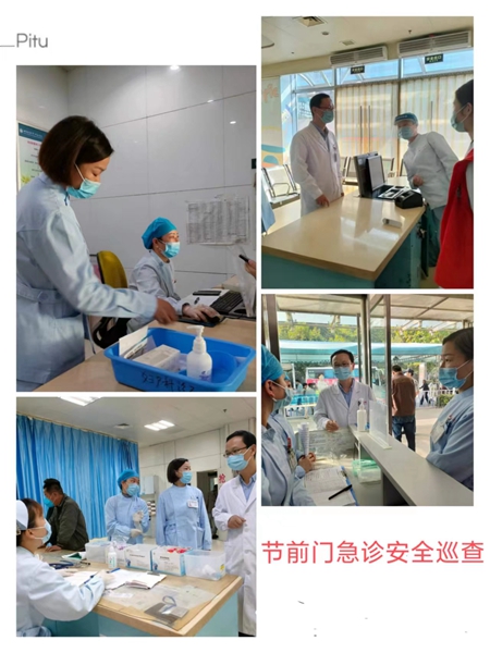 國慶節(jié)來臨之際,為確保節(jié)假日期間門急診就診患者和醫(yī)務(wù)人員安全,張定明書記逐一樓層安全巡查。他強調(diào)要加強疫情防控監(jiān)測工作,督促病人戴好口罩。各科室值班人員要按時上崗,加強巡視、檢查,切實保障各項工作安全平穩(wěn)進行。持續(xù)努力為前來就診患者提供一個整潔干凈的舒適環(huán)境,提高患者的就醫(yī)感受。