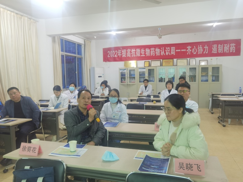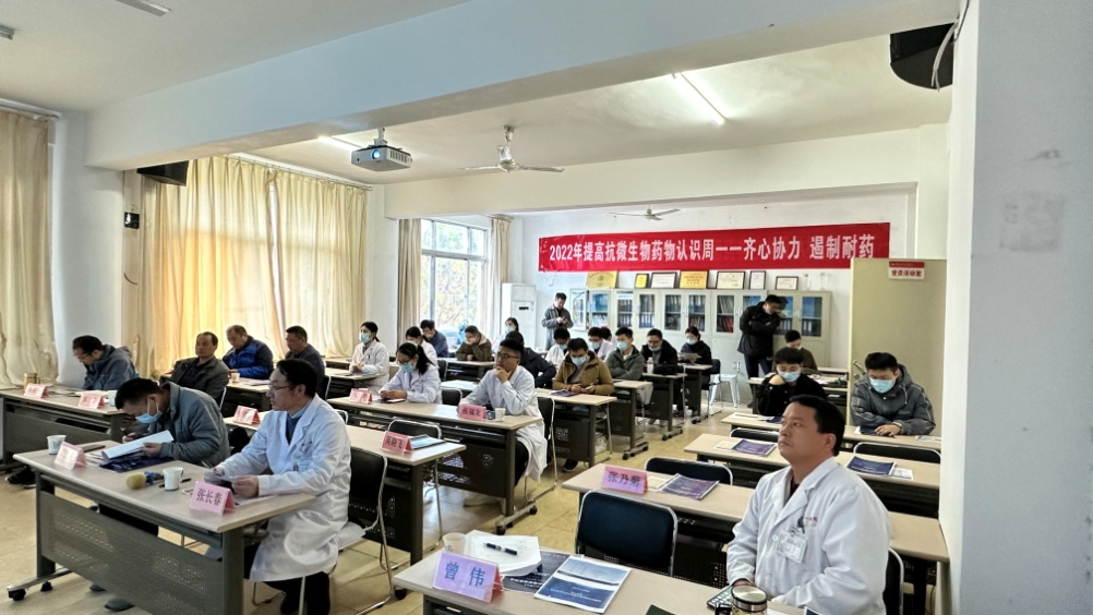 為提高全社會(huì)合理使用抗微生物藥物的意識(shí)和水平,國(guó)家衛(wèi)生健康委醫(yī)政醫(yī)管局決定在每年的11月18日-24日組織開(kāi)展“提高抗微生物認(rèn)識(shí)周”活動(dòng),今年的主題是:齊心協(xié)力,遏制耐藥。為貫徹落實(shí)國(guó)家衛(wèi)健委對(duì)相關(guān)活動(dòng)的要求,我院在今年提高抗微生物藥物認(rèn)識(shí)周來(lái)臨之際,通過(guò)前期策劃,組織開(kāi)展了以“齊心協(xié)力 遏制耐藥”為主題的MDT會(huì)議,醫(yī)務(wù)科、感染科、急診外科、神經(jīng)外科、肝膽外科、耳鼻喉科、心臟外科、微生物室、藥劑科等30余人參與本次MDT。