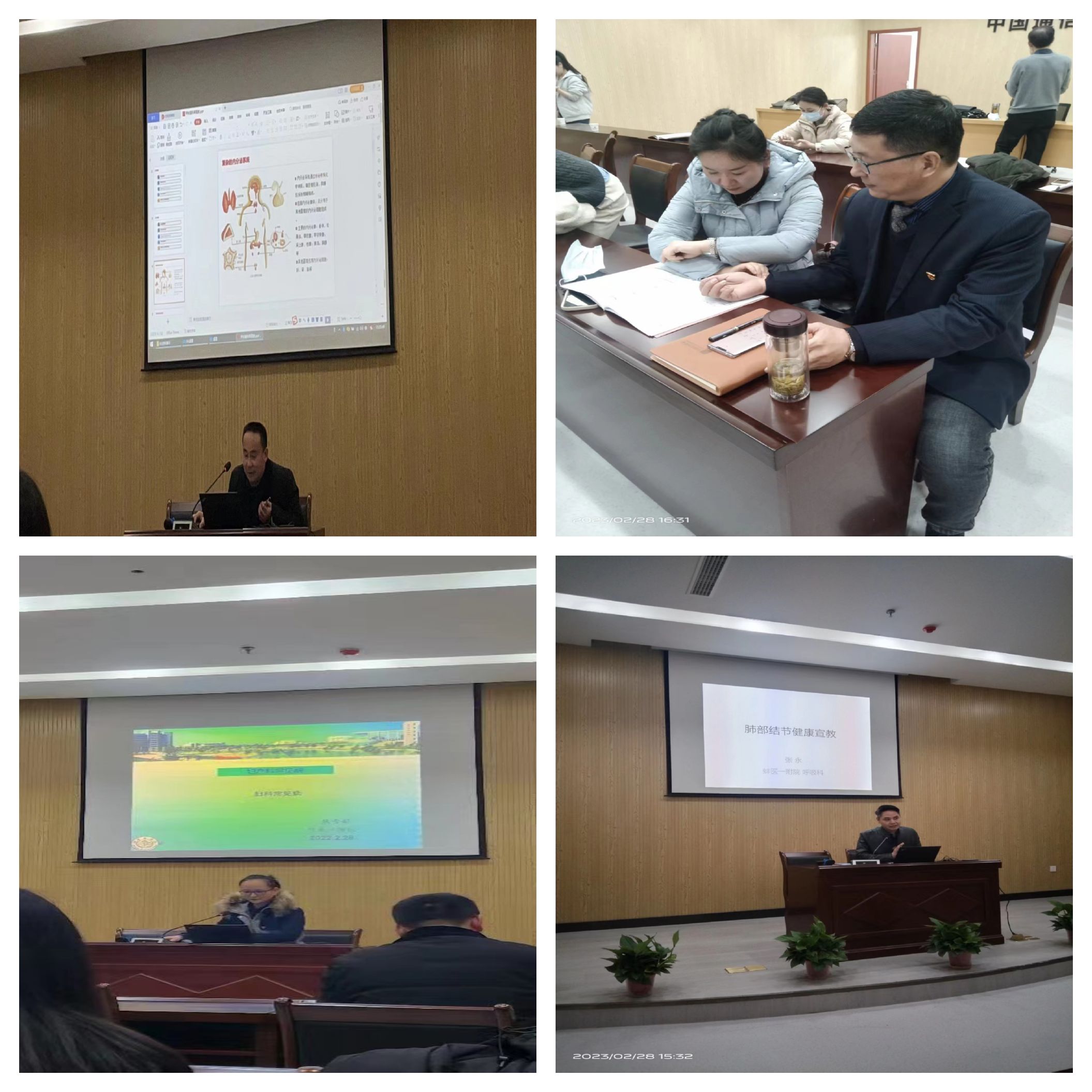 在通信產(chǎn)業(yè)工作人員積極宣傳協(xié)助下, 20余名職工準(zhǔn)時到達現(xiàn)場。在講座開始前,體檢中心支部書記李保伍就醫(yī)院基本情況和到場專家等進行簡短的介紹。針對對方單位職工關(guān)心的健康問題,體檢中心黨支部邀請呼吸科張永、腫瘤外科劉鐵成、產(chǎn)科焦雪娟、全科醫(yī)學(xué)科李苗等專家,分別就教職工關(guān)心的肺結(jié)節(jié)、甲狀腺結(jié)節(jié)、婦科常見病、高血壓管理等方面進行健康宣講。