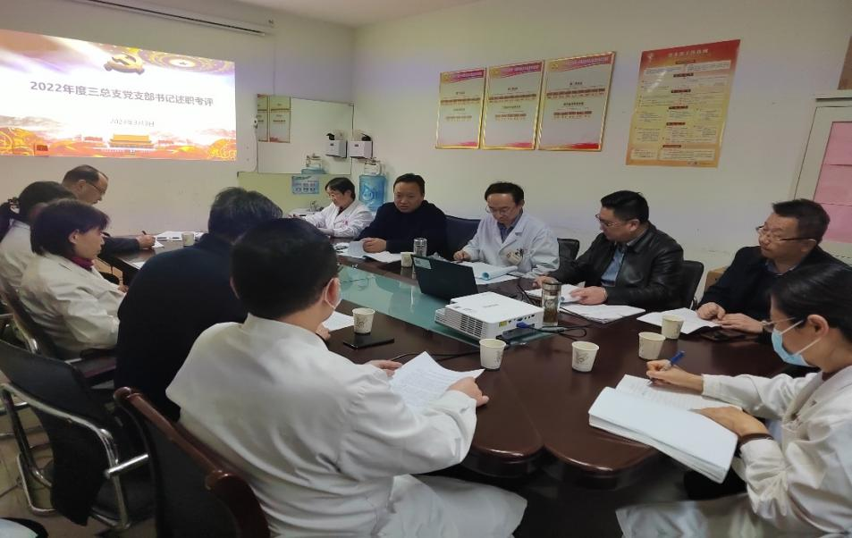 根據醫(yī)院黨委統(tǒng)一部署,3月3日下午,第三黨總支在門診三樓黨員活動室,召開2022年度黨支部書記抓黨建工作述職評議會。院黨委副書記、黨建聯(lián)系人李偉,院黨委委員、組織統(tǒng)戰(zhàn)科科長沈永祥到會指導??傊瘑T及各黨支部書記參加會議,第三黨總支書記方青主持會議。
