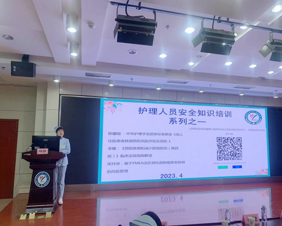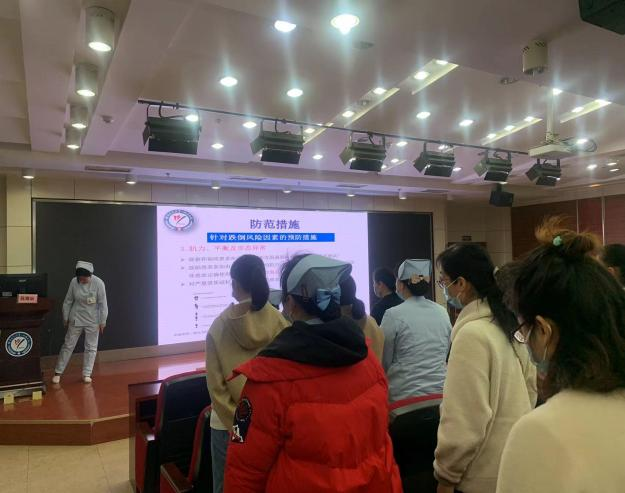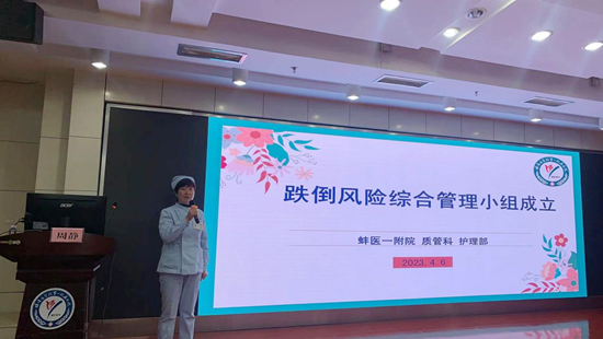 護(hù)理部李秀川主任致辭,她指出跌倒預(yù)防和管理是醫(yī)院管理的一個(gè)重要和必要項(xiàng)目,并對(duì)2022年我院住院患者跌倒不良事件進(jìn)行了分析。為了規(guī)范科學(xué)地預(yù)防跌倒、減輕跌倒傷害程度,普及跌倒相關(guān)知識(shí),特成立跌倒風(fēng)險(xiǎn)綜合管理小組,希望護(hù)理部在質(zhì)量管理科、藥劑科和醫(yī)務(wù)科等多部門協(xié)助下,在跌倒小組成員共同努力下,讓患者能夠減少跌倒發(fā)生、減輕跌倒傷害程度,保障患者安全。