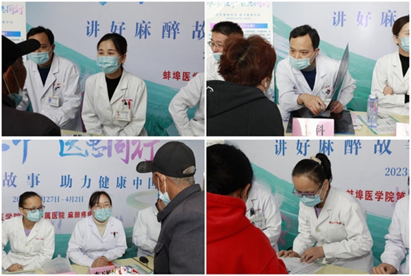 3月31日我院麻醉科積極響應(yīng)“健康中國”號召,聯(lián)合產(chǎn)科、骨科、消化內(nèi)科、腫瘤內(nèi)科等在我院門急診廣場開展科普宣傳義診活動。臨床經(jīng)驗豐富的醫(yī)生們?yōu)楸姸嗲皝韱栐\咨詢的患者與群眾一一解答科普麻醉、急慢性疼痛、分娩鎮(zhèn)痛、癌痛治療、舒適化醫(yī)療和急救科普等相關(guān)知識,同時發(fā)放無痛胃腸鏡、分娩鎮(zhèn)痛等麻醉科普圖冊百余份,提高了公眾對麻醉醫(yī)學知識的認識和公眾對麻醉學科的認知度及認可度,加深了大眾對麻醉醫(yī)生的了解,推進了舒適化醫(yī)療深入實施。一襲白素衣,一雙纖纖手,一顆熾熱心,在這咋暖還寒的倒春寒天,讓患者和家屬切實感受到了杏林春暖、健康相伴。